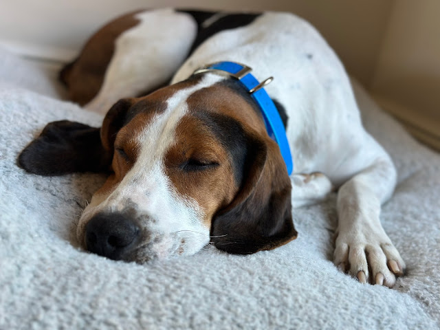 After a couple of months of domestication training, he worked his way from the yard/garage into our house with the only casualties being a few throw pillows, some socks, 3 dog beds, a Christmas gift- well, you get the idea. Eventually, he learned the rules of the house and abided by them most of the time. But, in his heart, Otis was a man of the great outdoors, so his bed was next to the glass backdoor where he could be apprised of any and all movement of any kind. A squirrel, a cat, a leaf, a piece of paper, another dog- all would call for his immediate action as he would start singing verses of his hound dog songs signaling I needed to open the door at once before he segued into the chorus. He just wanted to hunt. All. Day. Long. Davis was walking him three times a day and taking him to the country 2-3 times a week to let him run and explore and chase every living thing. He chased all manner of moving things and, when he was feeling especially frisky, sadly, he’d chase a car or 4-wheeler which led to his untimely end on our quiet, little street.